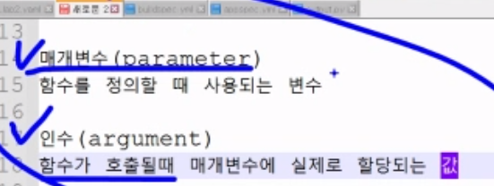 매개 변수 : 값을 입력 받는 값
