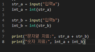 - input()함수의 입력 자료형은 항상 문자열이므로 입력받은 문자열을 숫자열로 바꿈.