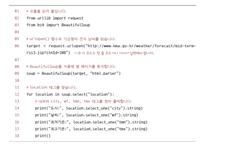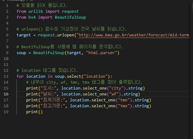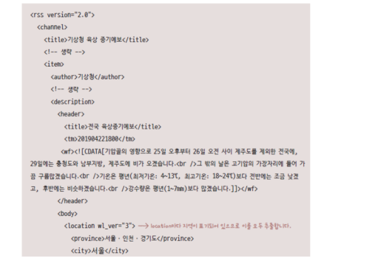 6행에는 http://www.kma.go.kr/weather/forecast/mid-term-rss3.jsp?stnId=108 를 쓸 것