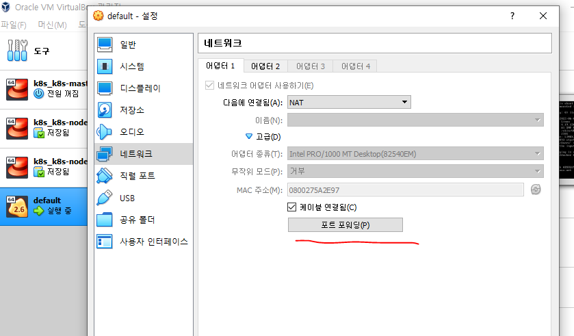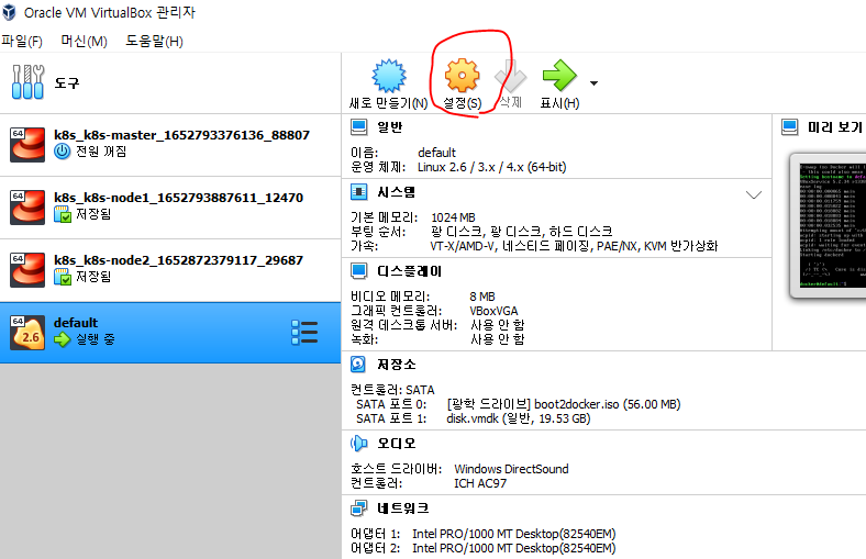 docker Toolbox로 깔린 디폴트 머신의 설정 누르기