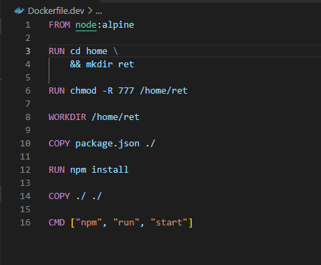 Dockerfile.dev(개발을 위한 도커파일) 생성