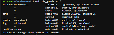 볼륨 크기 조정 후 Linux 파일 시스템 확장 - Amazon Elastic Compute Cloud