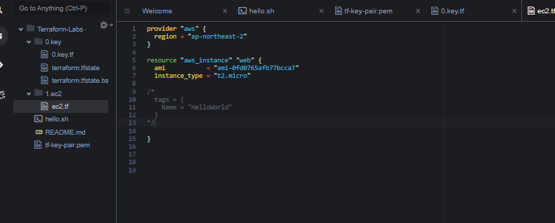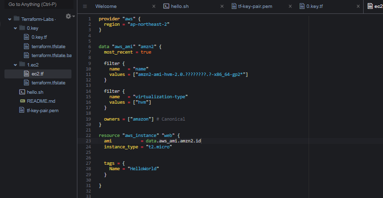 ec2.tf 파일을 만들고 이런식으로 작성해줌.
