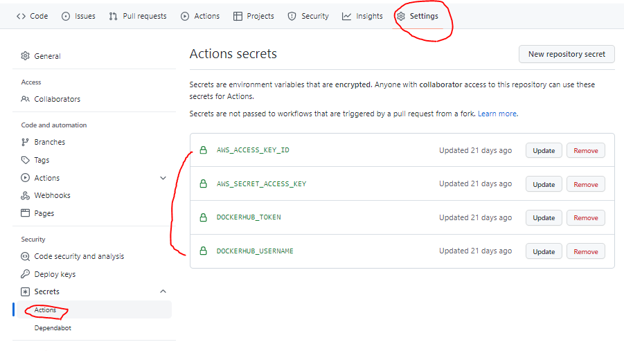 AWS ACCESS_KEY, AWS SECRET_KEY)