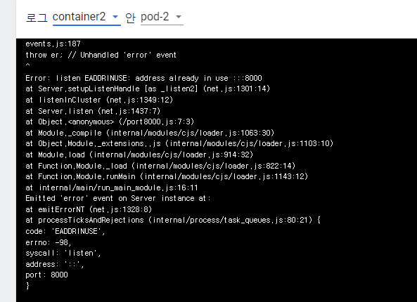 포트를 두개 중복 시키면 로그에서 이러한 오류를 확인 가능함