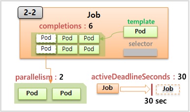 - selector과 template이 있음 (completions로 파드의 수를 조절할 수 있음.)