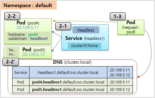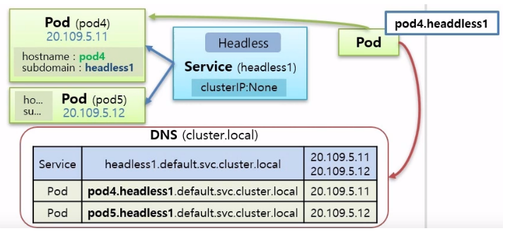 - 그래서 미리 할당된 pod4.headless1.default.svc.cluster.local을 활용 가능함