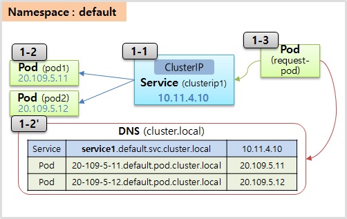 - 보통 DNS에서 볼때 이름들이 Pod, Service들은 긴 도메인 이름과 IP가 저장됨
