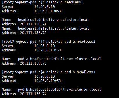 nslookup pod-b.headless1