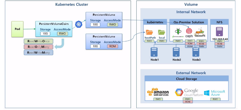 - 초급에서 배운 Volume은 이러하게 k8s Cluster에서 PV를 만든 이후