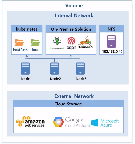 - 내부망에서 NFS를 사용해서 다른 서버를 Volume으로 사용 가능