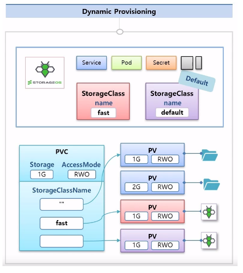 - 사용자가 PVC를 만들면 알아서 PV를 만들어주고 실제로 Volume과 연결해주는 기능을 지님