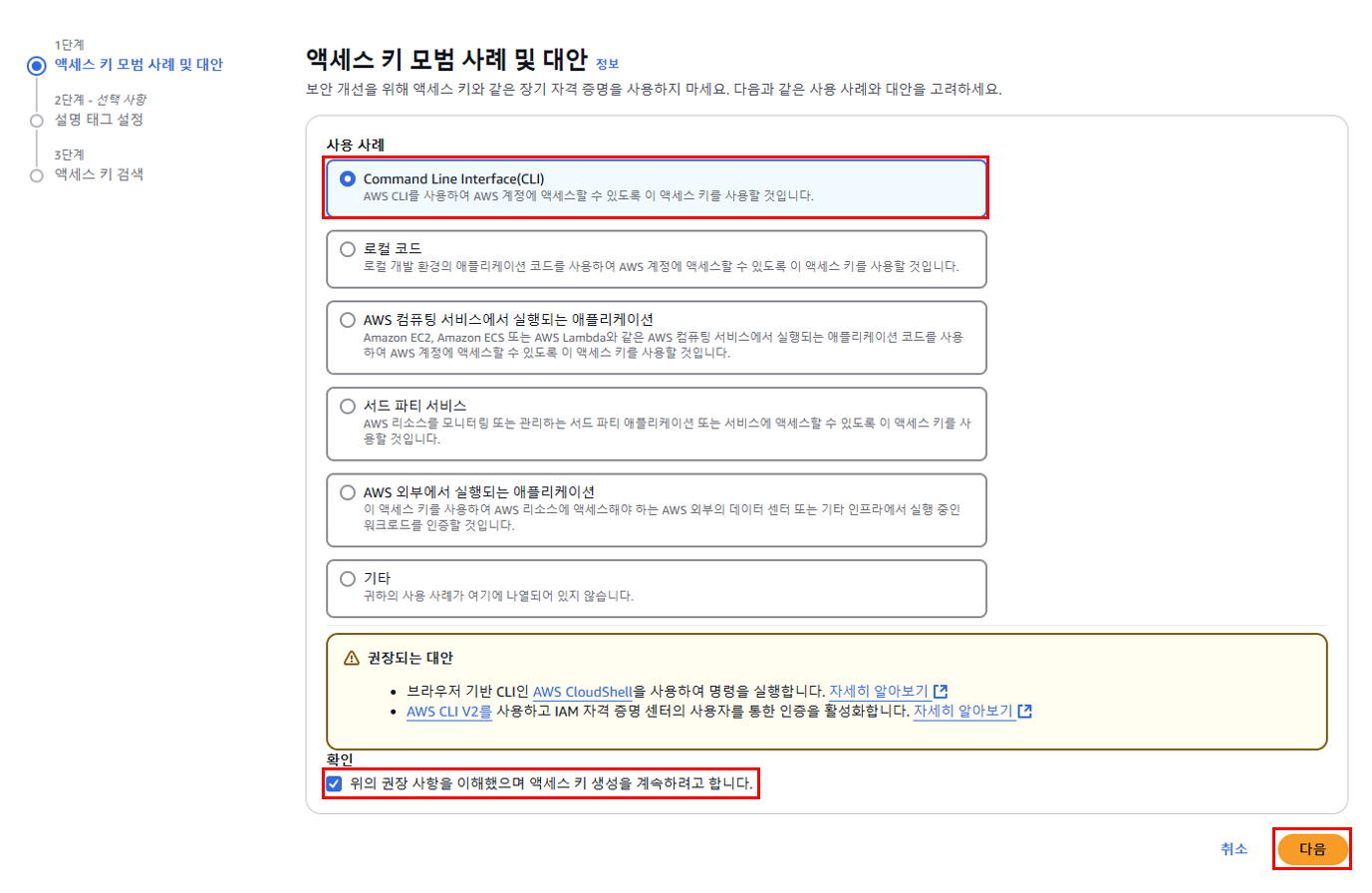 8. CLI 사례로 선택 후 다음 -> 2단계 생략