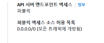 에서 언급했듯이. Public Endpoint Access로 클러스터를 구축하면