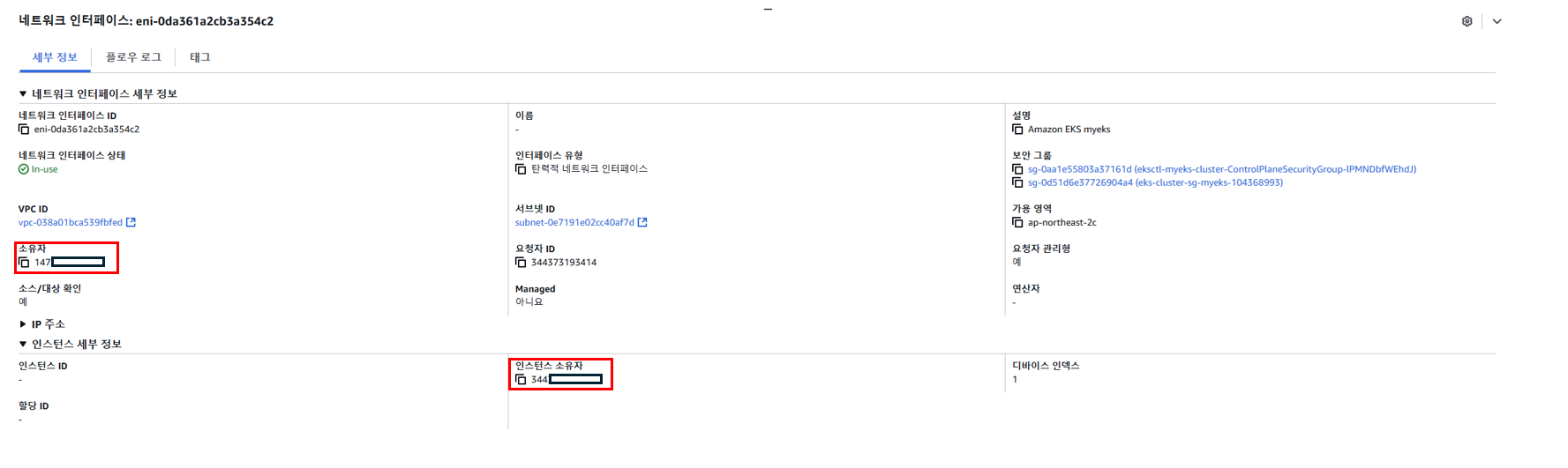 * 보통 ENI를 생성하게 되면 소유자와 인스턴스 소유자가 동일한데 API서버는 AWS Managed이다보니