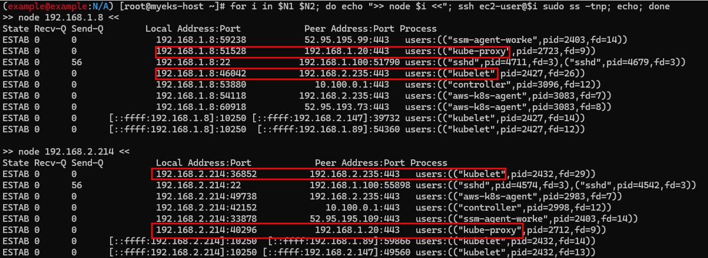 1) Bastion에서 API서버와 kubelet, kube-proxy의 peer IP 확인
