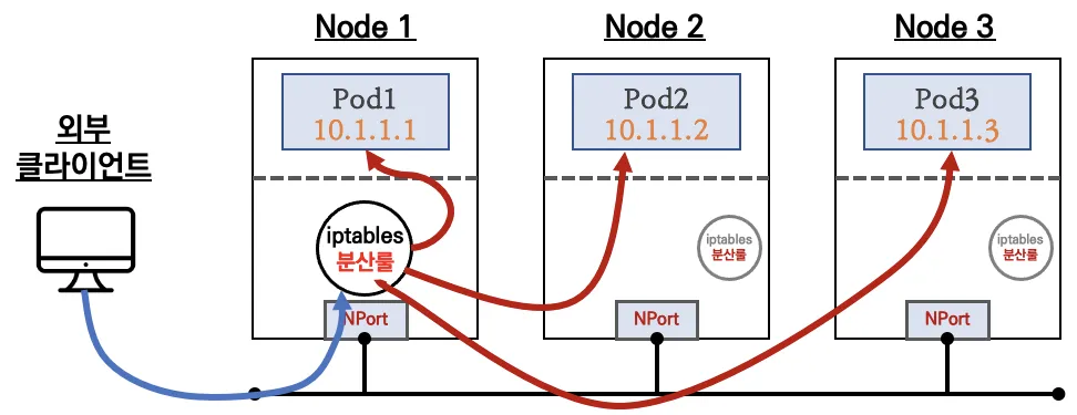 | NodePort | 노드의 특정 포트(30000~32767)에서 외부 접근 가능 |