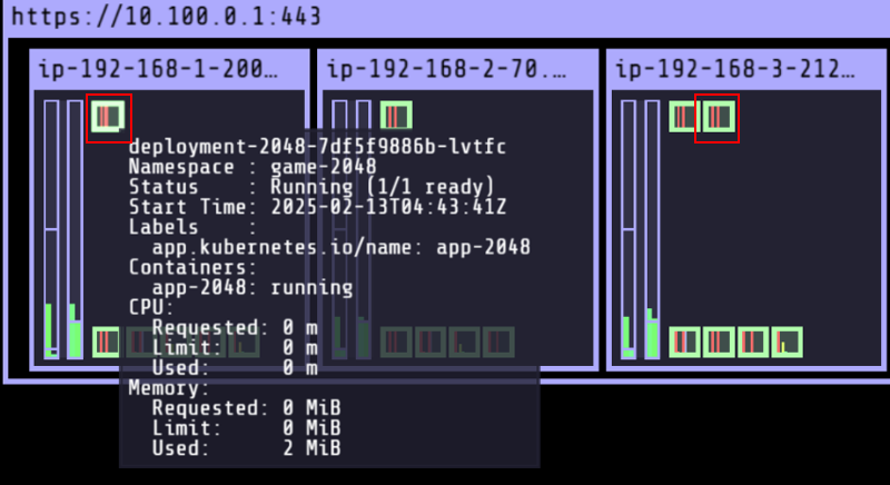 kube-ops-view에는 2번, 3번 노드에 파드가 1개씩 뜬 것을 확인할 수 있습니다.