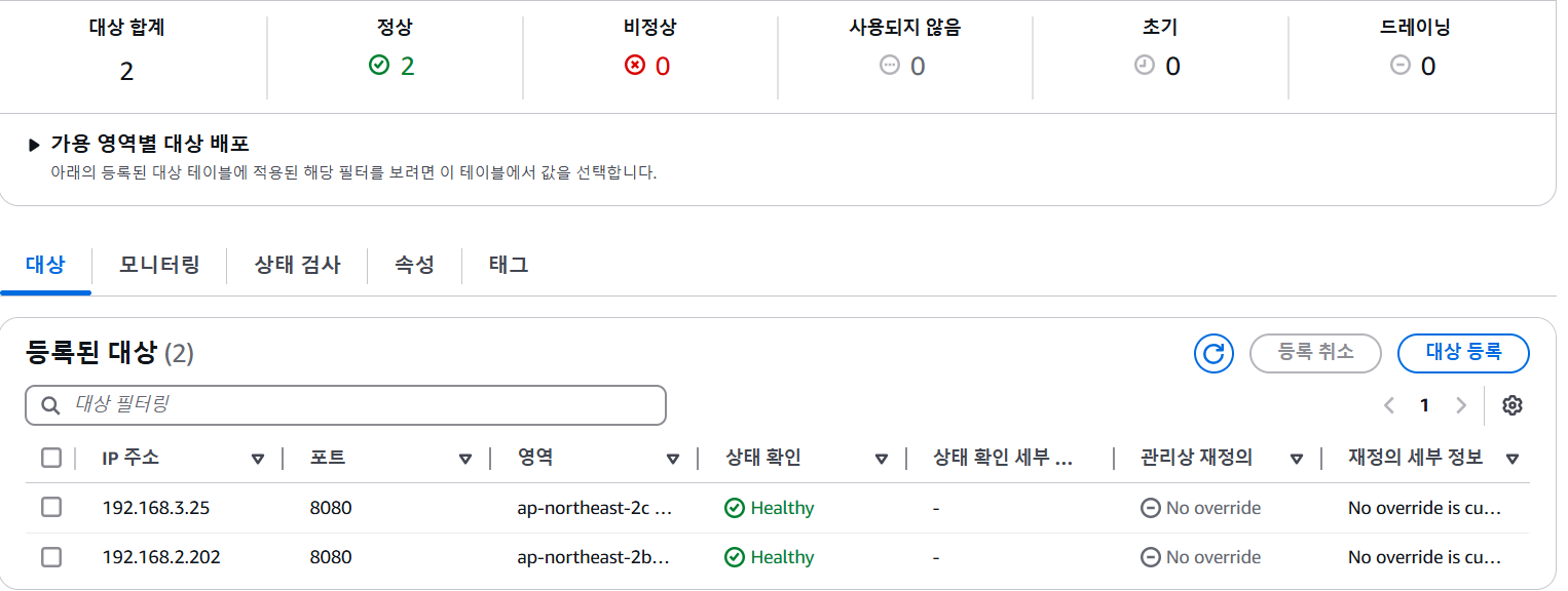 대상 그룹에서도 노드 1번과 3번의 파드가 연결되어 있음을 확인할 수 있습니다.