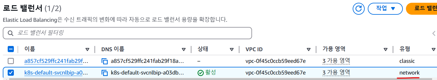 | LoadBalancer | AWS의 ALB 또는 NLB와 연동하여 외부에서 접근 가능 |