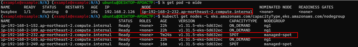 kubectl get nodes -L eks.amazonaws.com/capacityType,eks.amazonaws.com/nodegroup