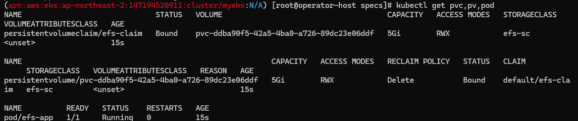 이제 addon을 설치하였으니 pod가 EFS를 사용하도록 합니다.