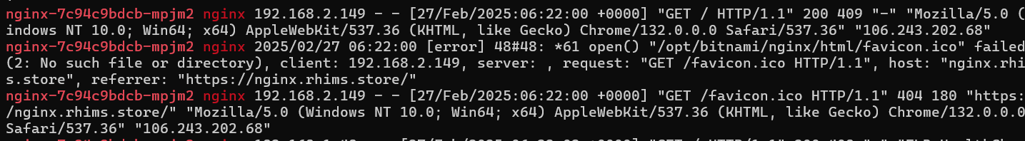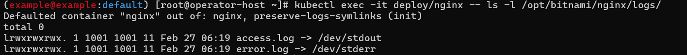 kubectl exec -it deploy/nginx -- ls -l /opt/bitnami/nginx/logs/