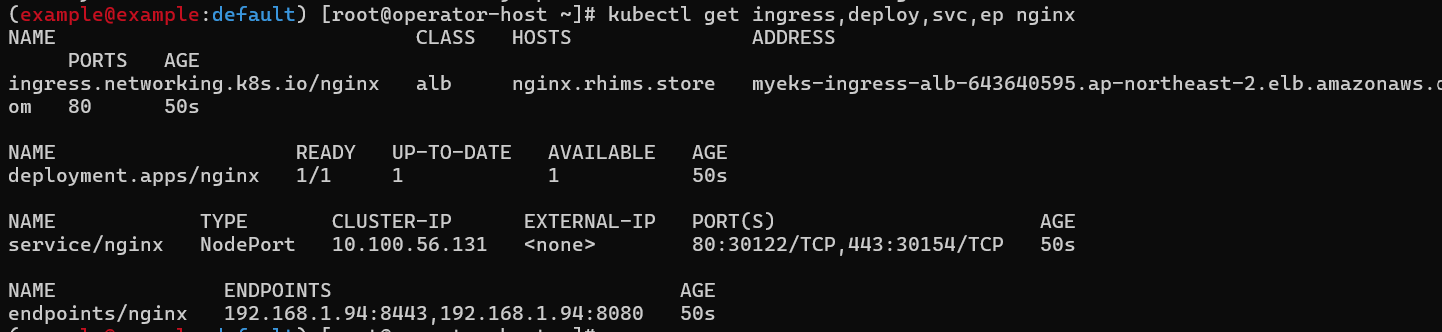 kubectl get ingress,deploy,svc,ep nginx