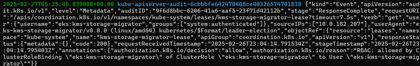 aws logs tail /aws/eks/$CLUSTER_NAME/cluster --log-stream-name-prefix kube-apiserver-audit --follow