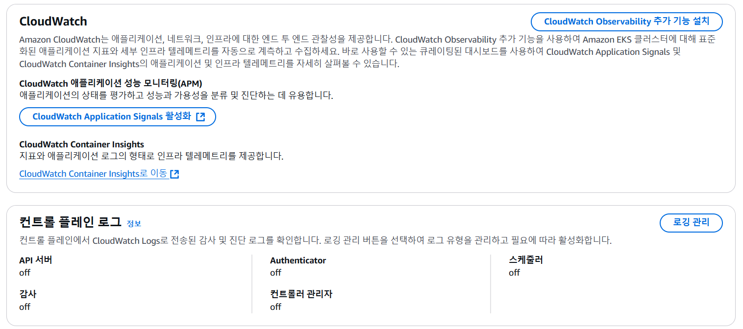 EKS를 아무 설정없이 설치할 경우 Control Plane의 로깅은 비활성화입니다.