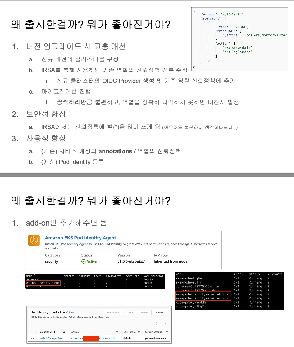 새로 출시한 Pod Identity는 위의 그림으로도 충분히 설명이되지만 크게 뭐가 바뀌고 좋을까요??