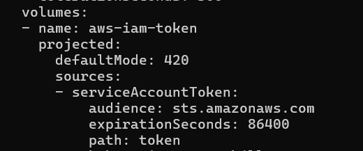 파드를 보면 이와 같이 projected 타입으로 volume이 있으며, Env에 Role에 대한 정의가 되어있습니다.