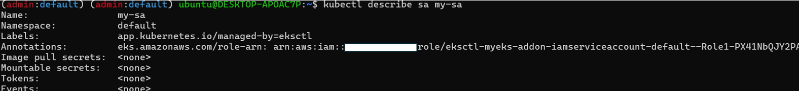 eksctl delete iamserviceaccount --cluster $CLUSTER_NAME --name my-sa --namespace default