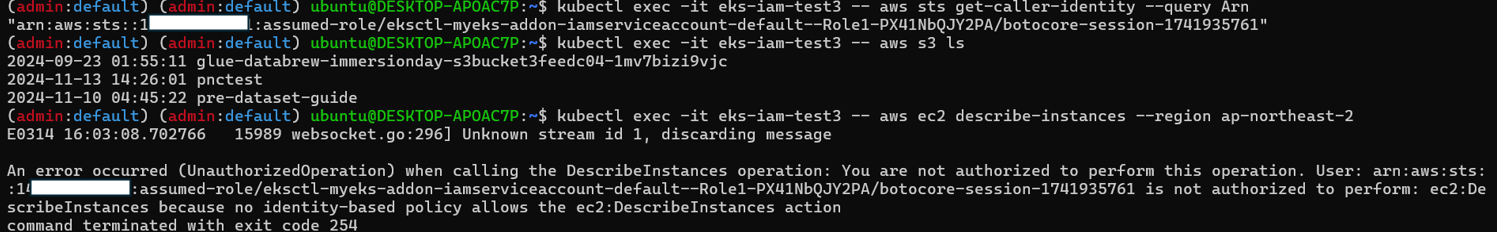 kubectl exec -it eks-iam-test3 -- aws s3 ls