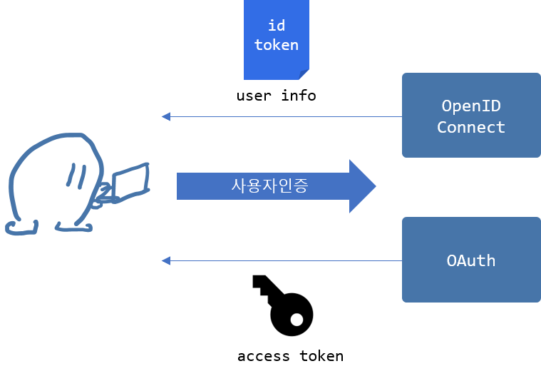 - OpenID Connect: 사용자 인증 및 사용자 정보 제공 (id token)