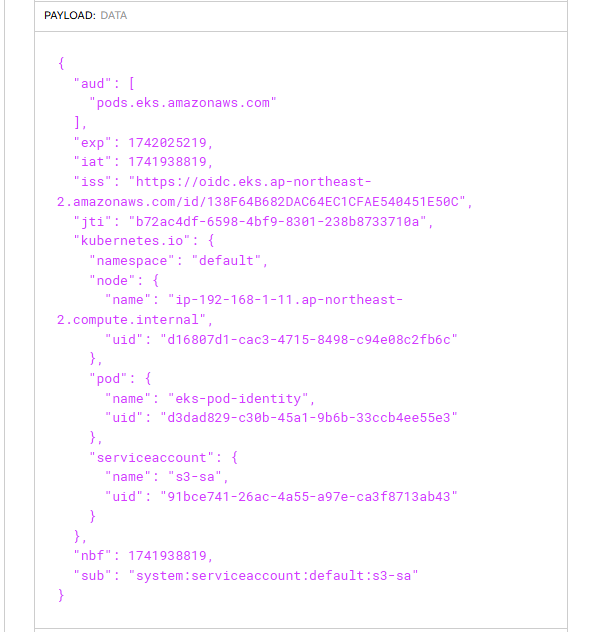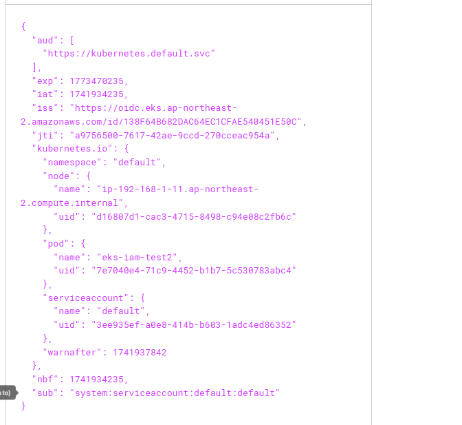 kubectl exec -it eks-pod-identity -- cat /var/run/secrets/pods.eks.amazonaws.com/serviceaccount/eks-pod-identity-token