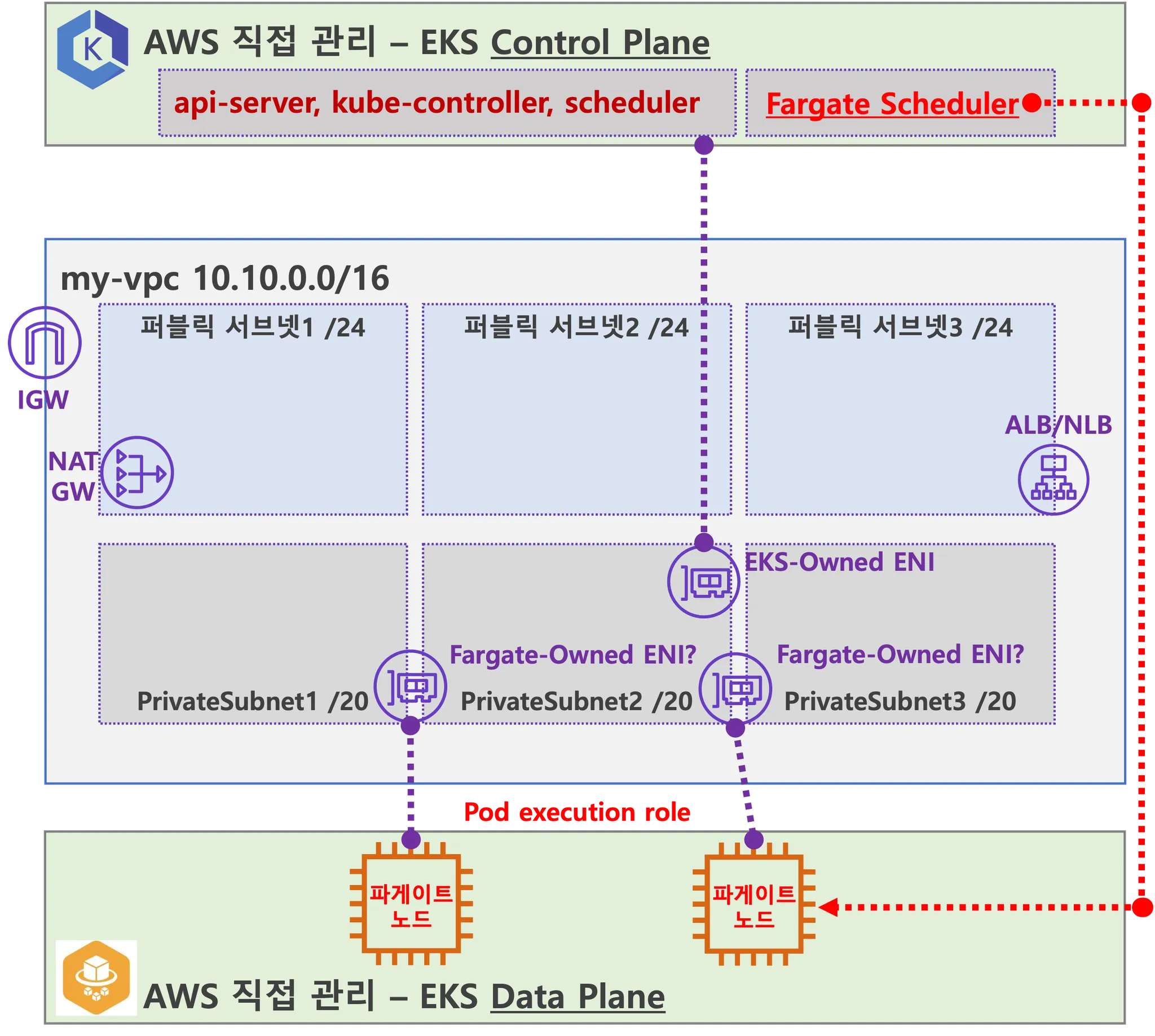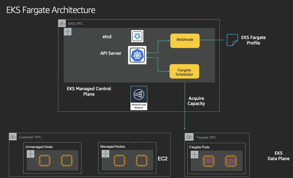 Fargate를 위해서 Control Plane에는 일반적인 스케쥴러외에 Fargate 스케쥴러가 필요합니다.