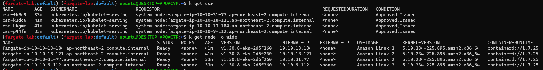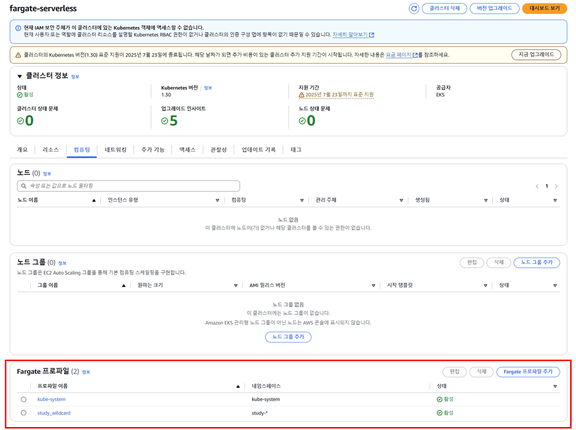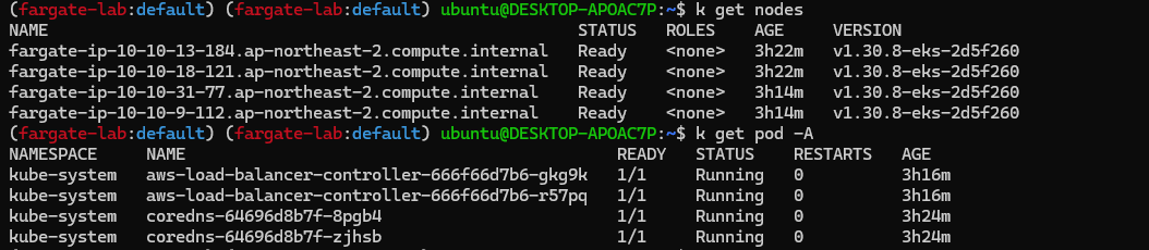 이제 배포한 EKS Fargate의 정보들을 확인해봅니다.