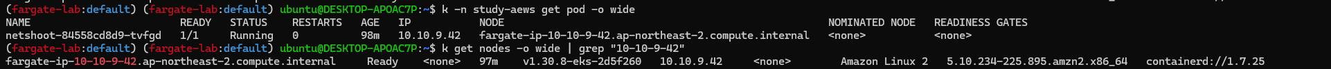 디플로이먼트와 동일하게 job도 그러면 fargate로 뜰 것 같은데 확인을 해봅니다.