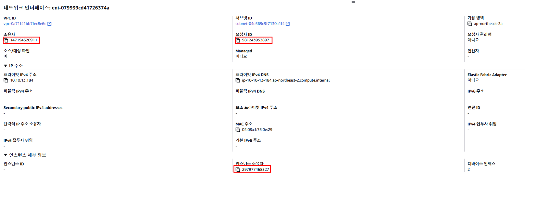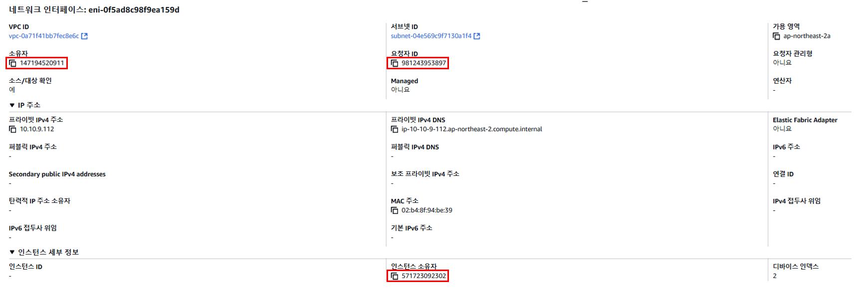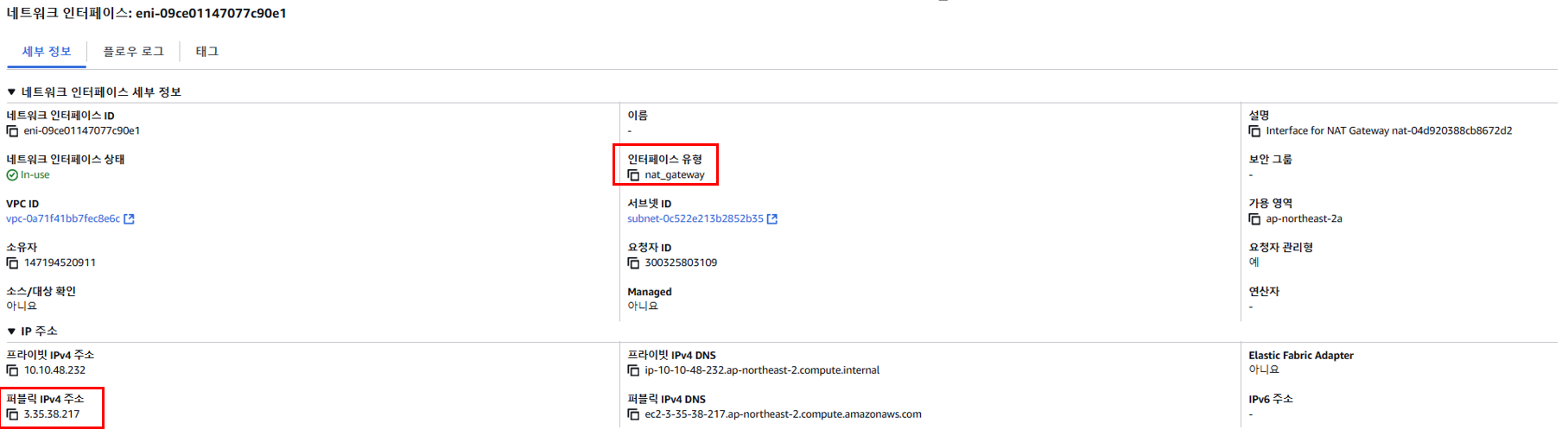 해당 네트워크 인터페이스도 콘솔에서 확인이 가능합니다.