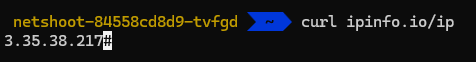 즉 (가칭) Fargate Owned ENI임을 확인했습니다. curl로 IP를 찍으면 그러면 출력되는 IP도 동일할까요?
