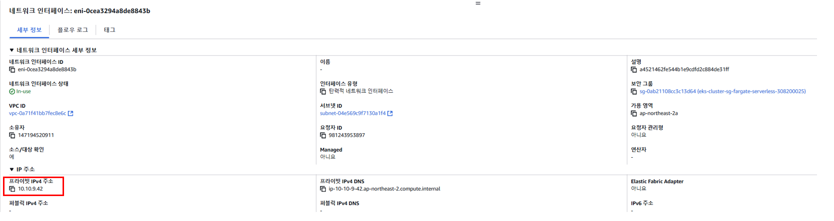 그리고 위에서 말한 (가칭)Fargate Owned ENI는 Application Container과 직접 매핑이 되어있는 것으로 추정됩니다.