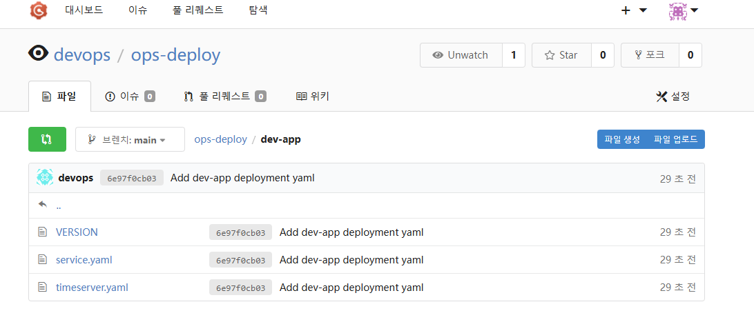 - Repo URL : `http://***<자신의 집 IP>***:3000/devops/ops-deploy` [http://192.168.254.127:3000/devops/ops-deploy](http://192.168.254.124:3000/devops/ops-deploy)
