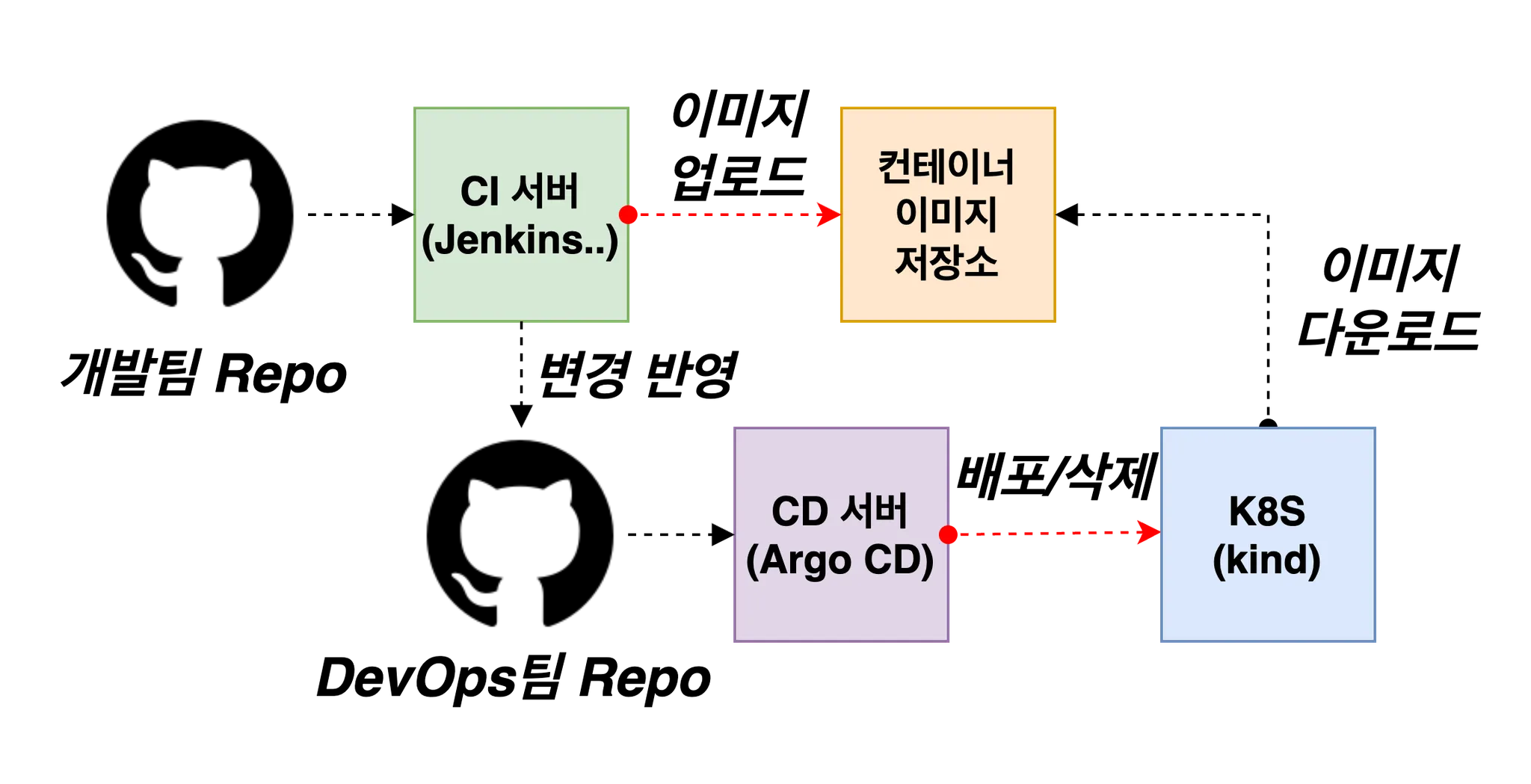 레포지토리로 보내고 webhook를 통해 argocd에 자동 반영됩니다.