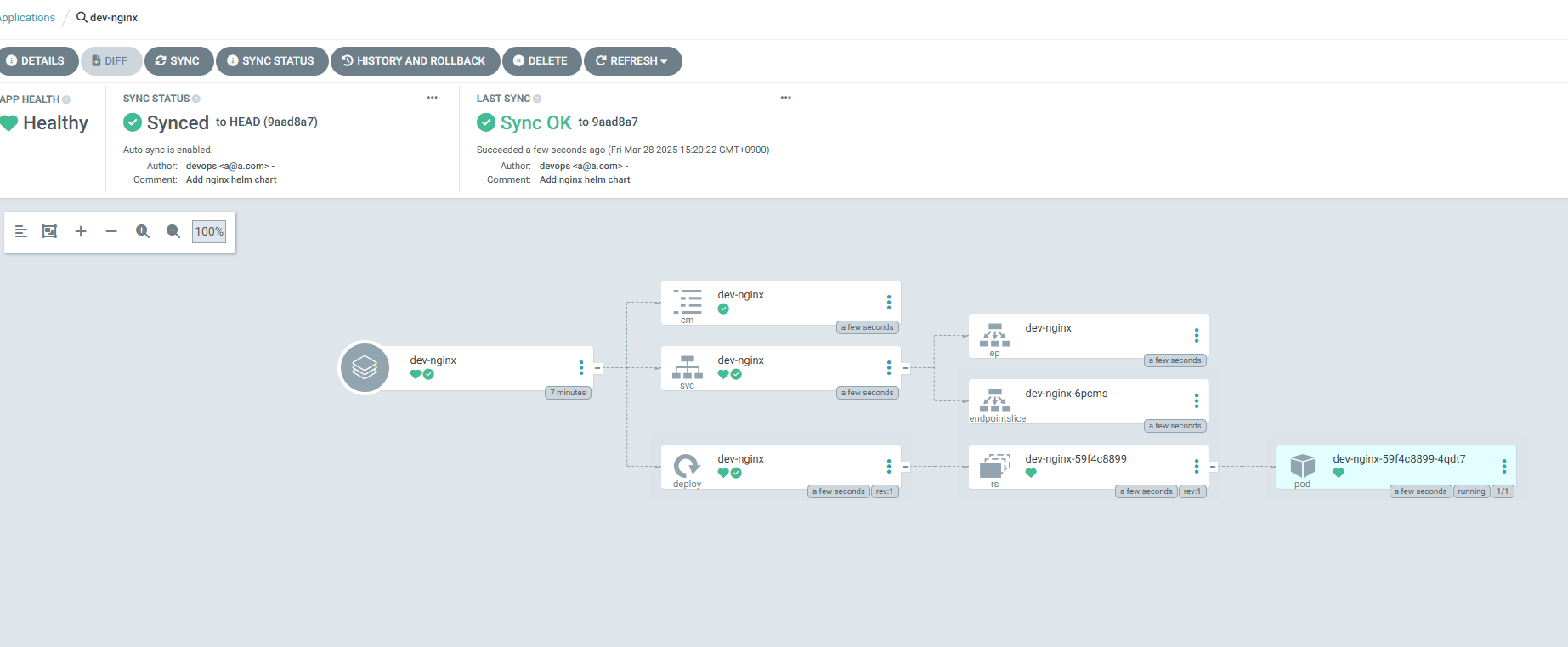 dev-nginx App 생성 및 Auto SYNC