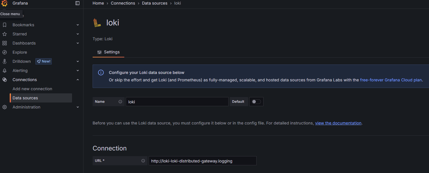 | Loki | http://loki-loki-distributed-gateway.logging | 80 | loki |