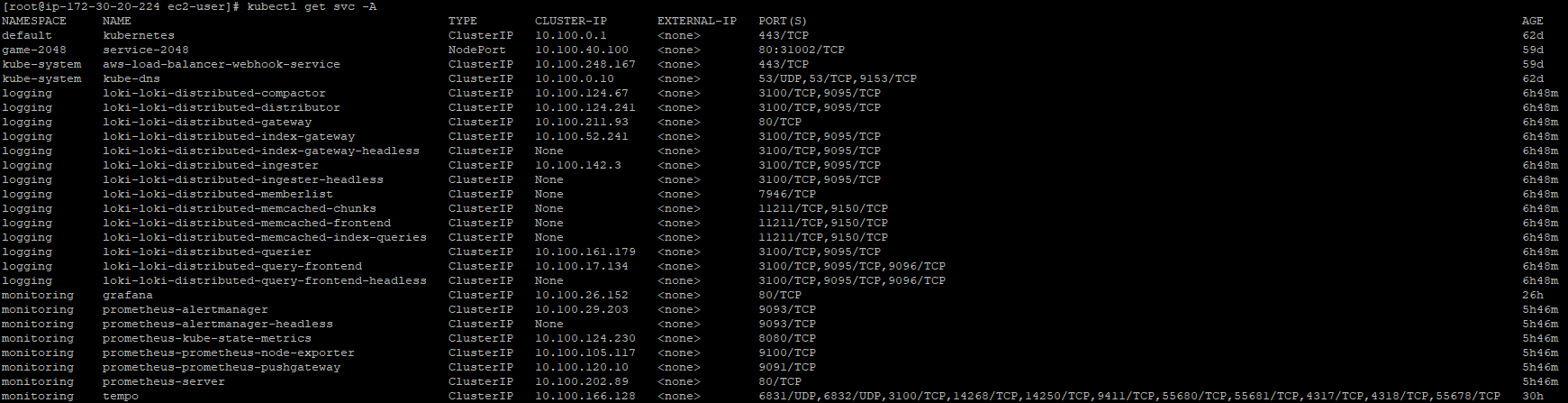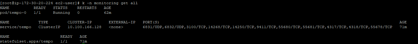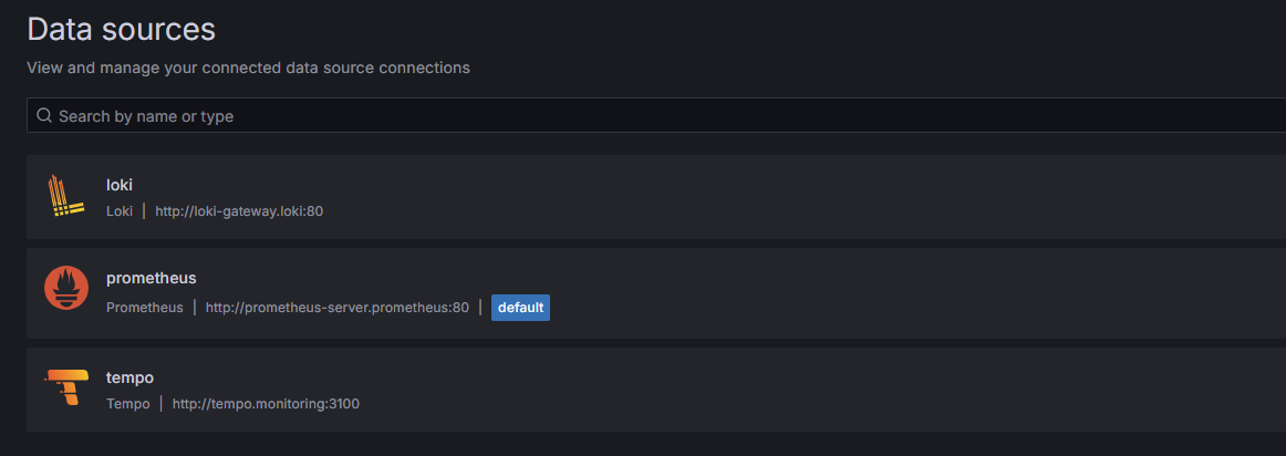 | Tempo | http://tempo.monitoring:3100 | 3100 | monitoring |