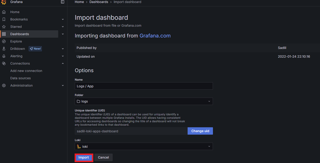 Loki 대시보드 확인