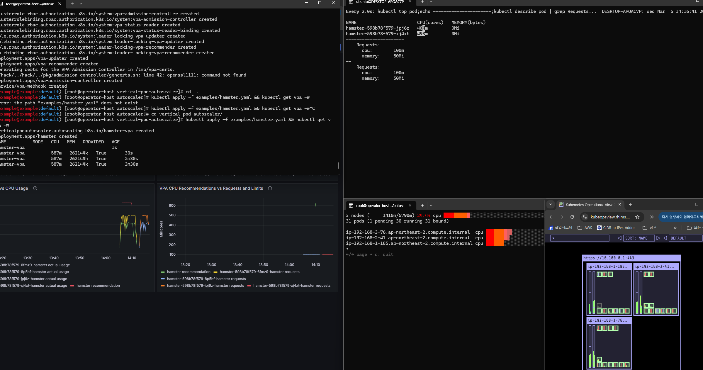 - VPA는 pod자원을 최적값으로 수정하기 위해 pod를 재실행(기존 pod를 종료하고 새로운 pod실행)합니다.