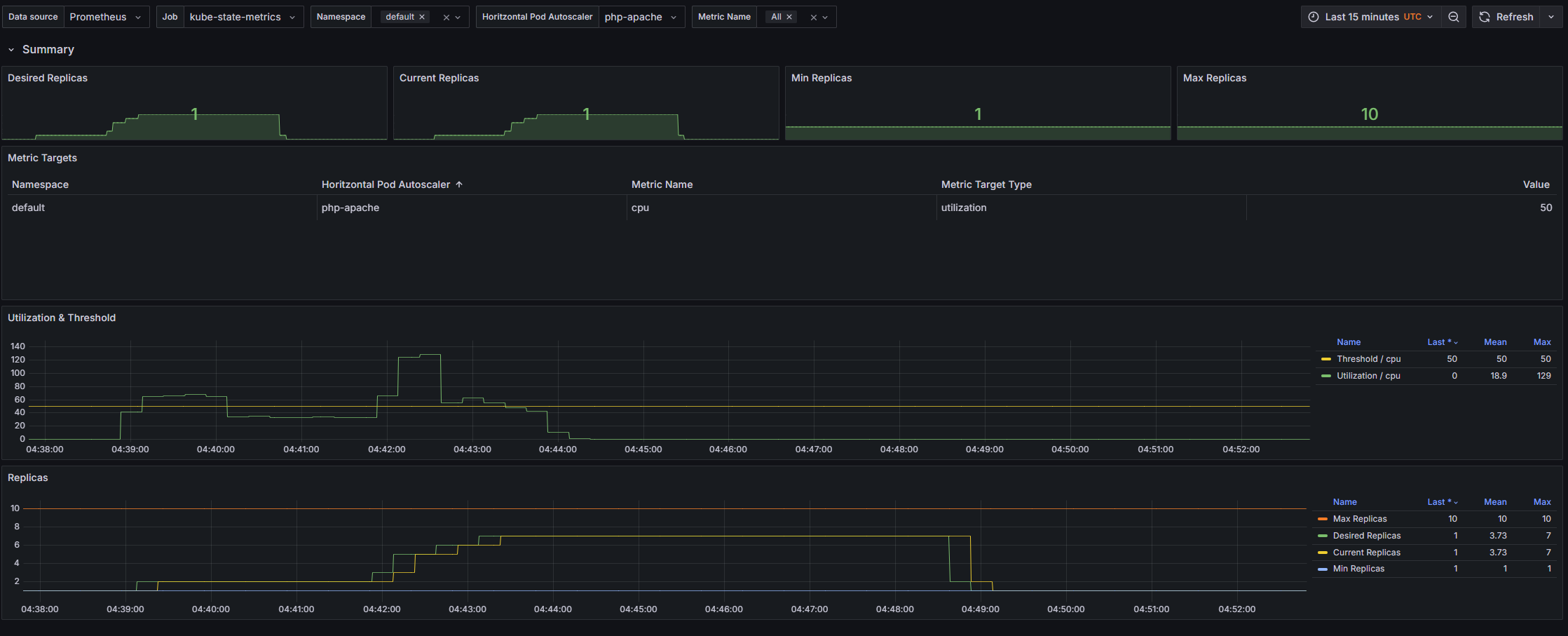 kubectl autoscale deployment php-apache --cpu-percent=50 --min=1 --max=10